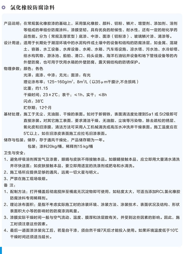 簡(jiǎn)介—— 產(chǎn)品說(shuō)明:在常規(guī)氯化橡膠漆的基礎(chǔ)上,采用氯化橡膠、顏料、鋁粉、鱗片、增塑劑、添加劑、溶劑等組成的單組份防腐涂料,漆膜堅(jiān)韌